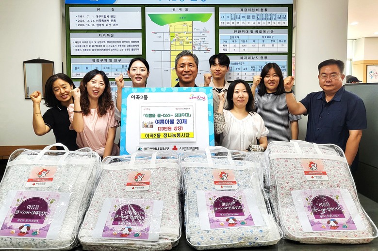 [달서구 세계타임즈=한윤석 기자] 대구 달서구 이곡2동(동장 박성준)은 공무원으로 구성된 정나눔봉사단이 모금한 후원금으로 구입한 여름이불을 관내 취약계층 가정에 직접 전달했다고 6일 밝혔다.