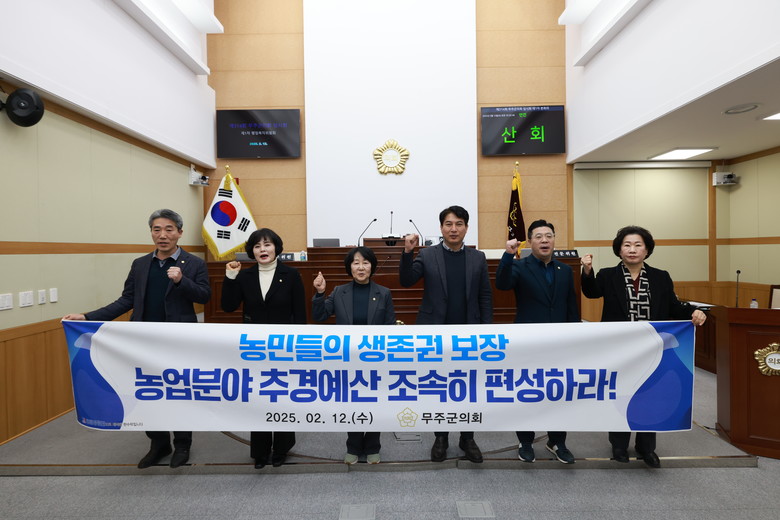 무주군의회는 채택한 건의안을 통해 농업을 정치적 이익추구 수단으로 삼거나 예산 부족사태를 방치해 농민에게 고통을 줘서는 안 된다며 ▲농민들의 경제적 부담과 고통을 덜어주기 위한 추가경정예산 조속 편성 ▲추가경정예산에 농민의 의견을 반영한 농업 분야 예산 증액 편성 ▲농민들의 생존권 보장을 위한 실질적인 지원책 마련을 요구했다.
