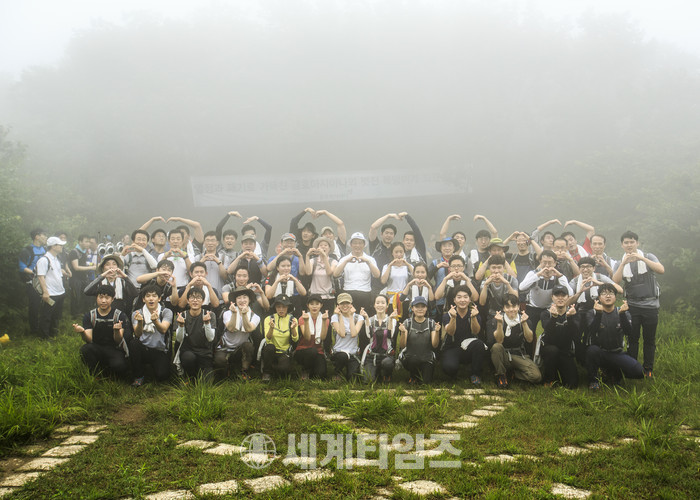 이날 박 회장은 산행의 선두에서 신입사원들을 이끌며 '하겠다는 의지, 하고 싶어하는 열정, 할 수 있다는 확신'을 강조했다. 또 정상까지 오르는 틈틈이 신입사원들의 포부와 꿈에 대해 경청하고 자유롭게 대화를 나누며 해발 644m 태화산 정상까지 등반을 완주했다.