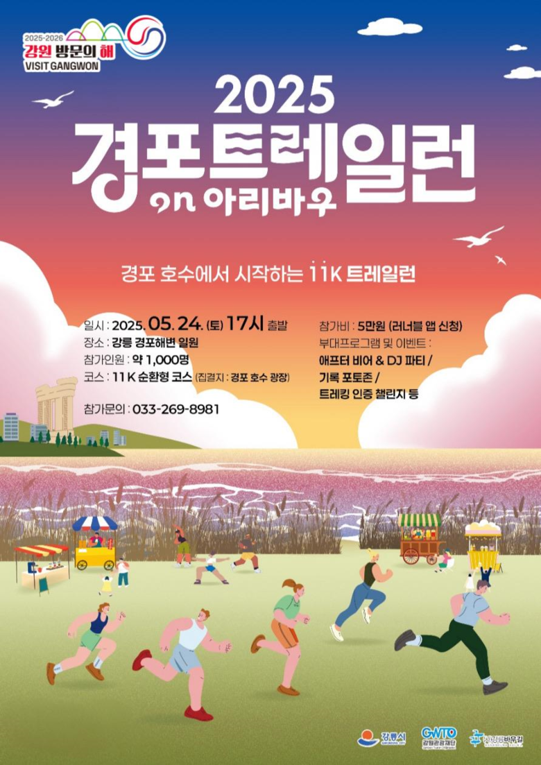 강원관광재단 최성현 대표이사는 “경포 트레일런은 단순한 달리기가 아닌 동해안의 아름다운 자연과 지역 문화를 함께 체험할 수 있는 소중한 기회가 될 것”이라며, “관광객 모두가 함께 즐길 수 있도록 최선을 다해 준비하겠다”고 전했다.