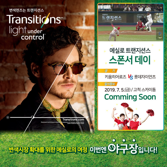 그동안 에실로코리아는 "변색렌즈는 트랜지션스"라는 슬로건 하에 트랜지션스 대중화에 힘써 왔으며, 2019년 키움히어로즈와의 스폰서 계약을 통해 그 여정을 야구장으로 확대한 바 있다.