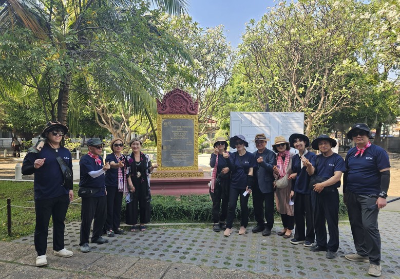 ▲사진설명 : 제나 정 (Dr, Zena Chung) 이사장이 한국인 관광객들과 함께 캄보디아 킬링필드 현장을 방문해, 아픈 역사의 흔적을 마주하고 있다. 과거의 고통을 단순한 기억에 머물게 하지 않고, 위로와 사랑으로 승화하고자 제나 정 이사장은 한국을 상징하는 ‘사랑의 하트’로 의미 있는 답례를 전했다. 참혹한 역사 속에서도 인류애와 평화의 메시지를 전하려는 순간을 담은 장면이다.