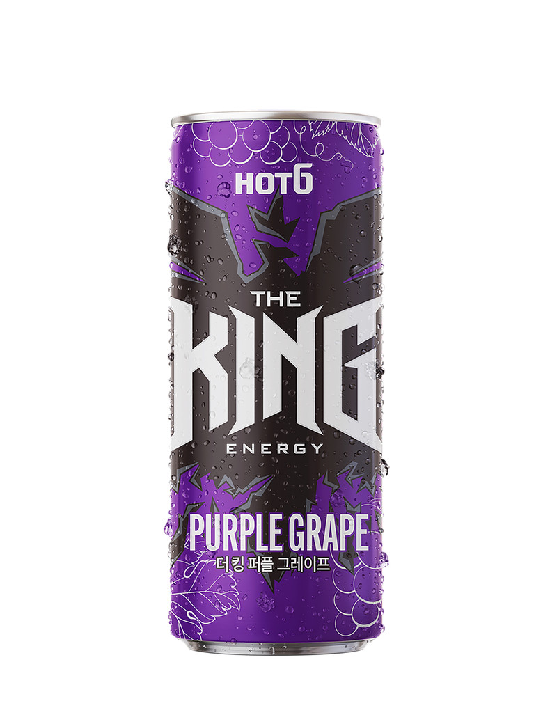 핫식스 더킹 퍼플 그레이프는 달콤한 적포도에 블루베리를 더해 다채로운 과일 맛이 특징이다. 마카추출분말, 과라나추출물, 타우린 등의 성분을 함유하고 있다. 패키지는 적포도를 연상시키는 보라색에 포도 넝쿨을 표현했으며 용량은 355mL다.