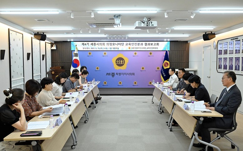 [세종 세계타임즈=이채봉 기자] 세종특별자치시의회(의장 임채성) 교육안전위원회(위원장 윤지성)는 19일 세종특별자치시의회 대회의실에서 교육안전분과 의정모니터링단과 제98회 정례회 의정모니터링 결과 보고회를 열고, 시민과의 소통 강화 및 의정활동의 투명성 제고를 위한 뜻깊은 시간을 가졌다.