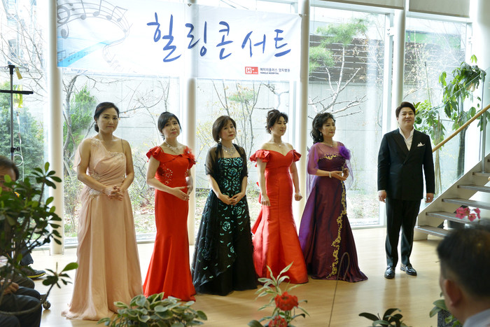| ▲1일 H+양지병원 힐링콘서트 ‘Love The Spring’ 이 봄날을 따뜻하게 비추었다. (오른쪽 첫번째가 37년전 H+양지병원 산부인과에서 태어난 이규봉 바리톤) |