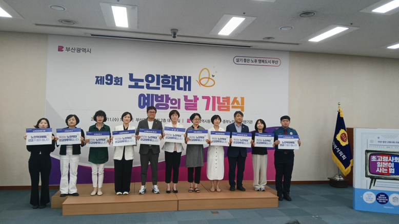 [부산 세계타임즈=이용우 기자] 부산시(시장 박형준)는 노인학대 예방의 날(6월 15일)을 맞아, 어제(11일) 오후 2시 시의회 대회의실에서 「제9회 노인학대 예방의 날 기념행사」를 개최했다고 밝혔다.