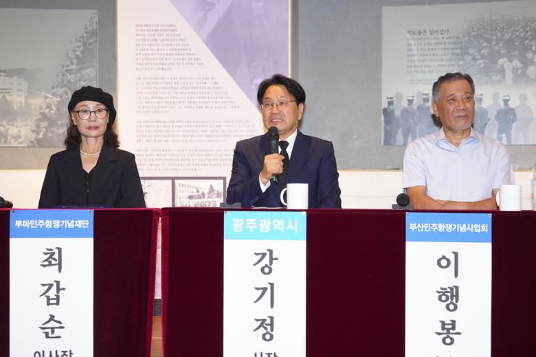 이날 간담회에는 강기정 광주시장을 비롯해 최갑순 부마민주항쟁기념재단 이사장, 이행봉 부산민주항쟁기념사업회 이사장, 박강배 5‧18기념재단 상임이사, 박용수 광주시 민주인권평화국장 등이 참석했다.