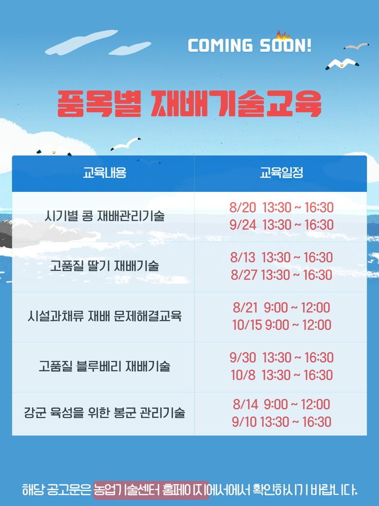 별도의 사전 신청 없이 당일 현장 접수를 통해 가능하다. 교육을 희망하는 농업인은 광주시농업기술센터 누리집 공고문을 참고하면 된다.