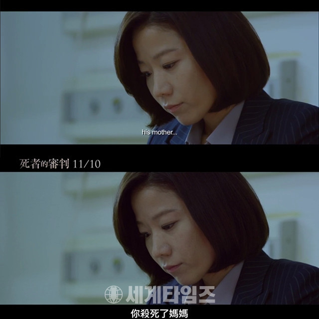 이어서 전혜진이 "아들이 엄마를 죽였다. 왜 그랬을까?"라고 독백하는 장면에서 각각 "A son killed his mother... But Why?", "兒子 你殺死了媽媽 你為什麼要那樣做?"라는 자막이 등장해, 그녀의 말처럼 아들이 엄마를 죽인 것이 사실인지 영화에 대한 궁금증을 자아낸다.