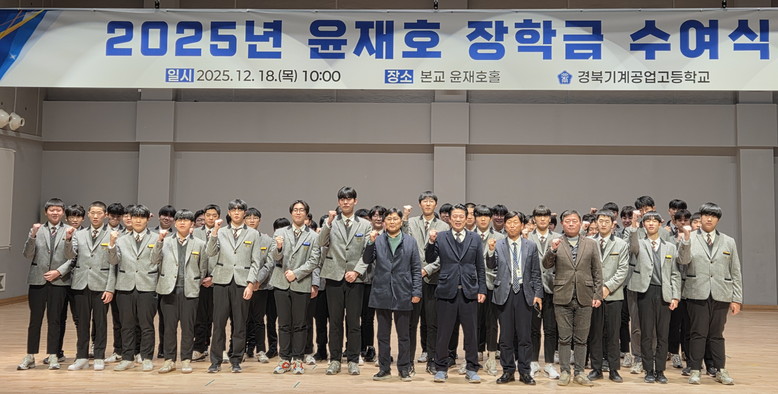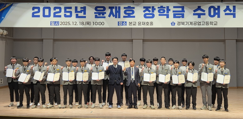 이준구 교장은 “윤재호 동문님의 나눔은 단순한 경제적 지원을 넘어 학생들의 꿈을 키우는 소중한 밑거름이며, 경북기계공고는 앞으로도 선배의 뜻을 이어받아 미래 산업을 이끌 책임감 있는 기술 인재 양성에 최선을 다하겠습니다.”고 말했다.