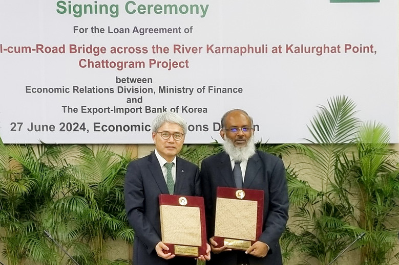 윤희성 수은 행장은 지난 27일(현지 시간) 방글라데시 다카에서 샤리아 카데르 시디키(Shahriar Kader Siddiky) 방글라데시 재무부 차관과 만나 EDCF* 7.2억달러, EDPF** 0.9억달러를 제공하는 차관공여계약서에 서명했다.