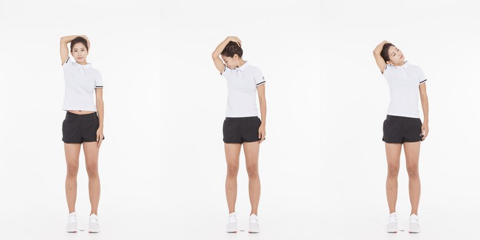 목 쭉쭉 늘리기 스트레칭 방법은 어렵지 않다. 먼저 등을 곧게 펴고 선채로 한 손을 머리 옆에 댄다. 손으로 머리를 어깨 앞쪽 45도 방향으로 당기고 15초 정도 유지한 뒤 천천히 돌아온다. 다음에는 머리를 어깨 뒤쪽 45도 방향으로 당겨 15초 유지한 뒤 풀어준다. 좌우로 각 5회씩 1세트로, 3세트 반복한다. 이때 어깨가 올라가거나 등이 구부정해지지 않도록 주의한다.