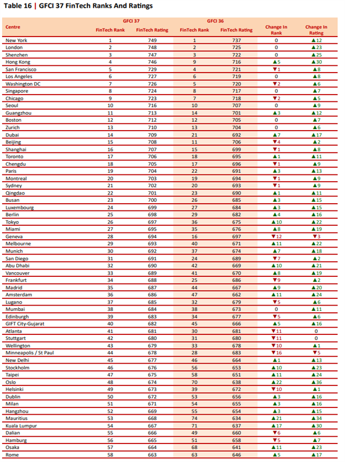 ◈ 핀테크 지수, 글로벌 115개 금융도시 중 23위… 전 평가 대비 3계단 상승