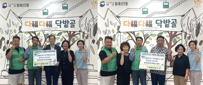 [서구 세계타임즈=이용우 기자] 부산 서구 동대신2동 주민자치위원회(위원장 김진수)와 함께하는 나눔회(회장 이순호)는 지난 4일, 쾌적한 마을 조성을 위해 새마을 주민 자율방역단에 방역 활동 지원금 100만 원을 전달하였다.