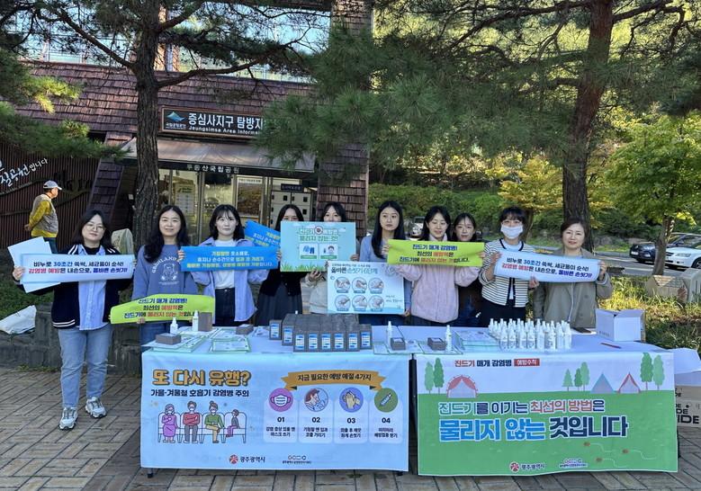 [광주 세계타임즈=손권일 기자] 광주광역시(시장 강기정)는 4일 무등산국립공원 증심사지구 잔디광장에서 자치구 보건소, 감염병관리지원단 등과 함께 진드기매개 및 호흡기 감염병 예방 캠페인을 벌였다.