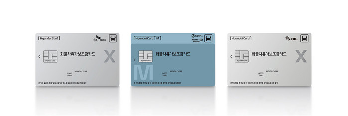 이번에 출시되는 3종의 카드는 현대오일뱅크, GS칼텍스에 특화된 ‘현대카드M-화물차유가보조금카드’와 ‘현대카드X-화물차유가보조금카드(SK에너지)’, ‘현대카드X-화물차유가보조금카드(S-OIL)’로, 고객은 주로 이용하는 정유사에 따라 카드를 신청하면 된다.