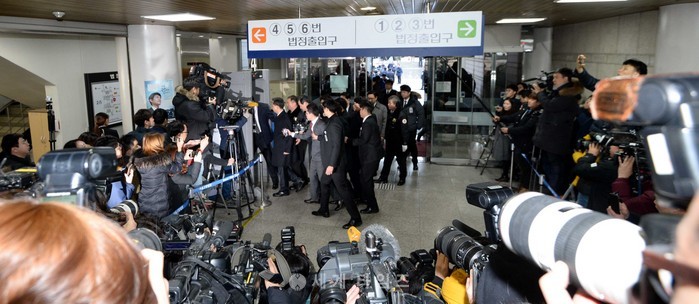 직권남용과 직무유기 혐의로 구속영장이 청구된 우병우 전 청와대 민정수석이 구속전피의자심문(영장실질심사)을 받기 위해 21일 오전 서울 서초구 서울중앙지법으로 들어서고 있다. 2017.02.21.