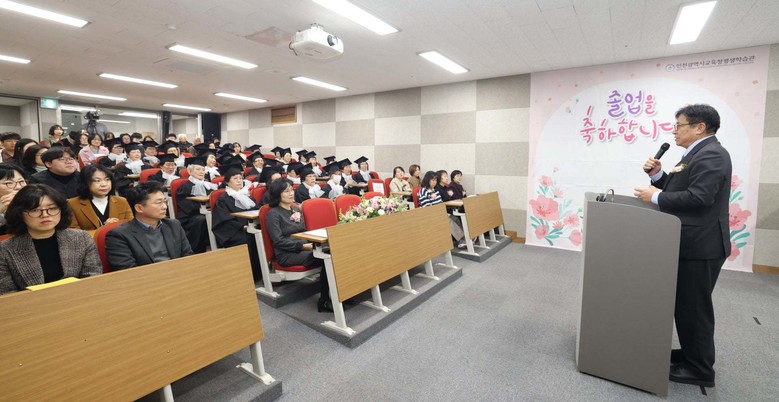 [인천 세계타임즈=심하린 기자] 인천광역시교육청평생학습관(관장 이재길)은 5일 도성훈 인천광역시교육감과 지도교사 및 가족이 참석한 가운데 초등·중학 학력인정 문해교육 졸업식을 진행했다.