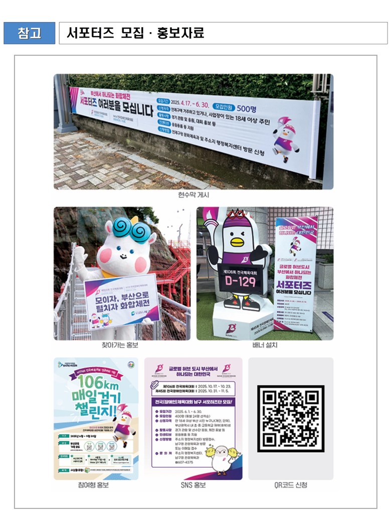 이날 발대식에는 ▲박형준 시장을 비롯해 ▲안성민 시의장 ▲김석준 부산시 교육감 ▲장인화 부산시 체육회장 ▲양재생 부산상공회의소 회장 ▲김선길 부산시 장애인체육회 사무처장 등 주요 내빈과 시민서포터즈 1천 6백명이 참석한다.
