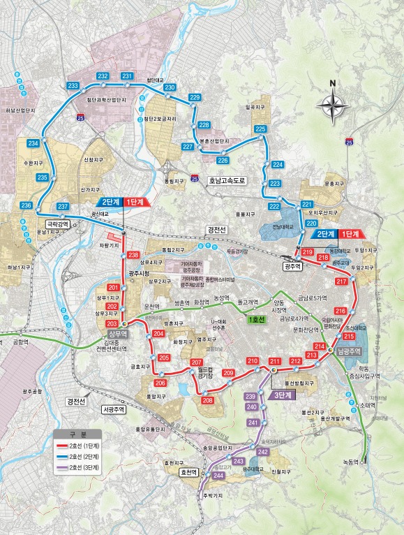 ‘도시철도 2호선 2단계’는 광주역에서 전남대학교를 거쳐 일곡·첨단·수완·운남지구 등 북부지역을 연결하는 20.046㎞ 구간에 18개 정거장을 건설하는 대규모 프로젝트이다. 1단계와 연계해 기존 도심과 신도시 간 교통 혼잡을 해소하고, 도시철도 중심의 대중교통체계를 구축함으로써 광주지역의 균형 발전과 도시개발을 촉진할 것으로 기대된다.