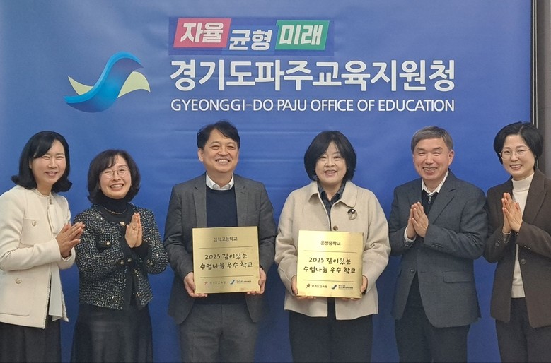 파주교육지원청은 2025학년도의 수업을 되돌아보면서 2026년 2월 20일(금), 깊이 있는 수업 나눔 실천 우수학교를 선정하여 기념 현판 수여식을 진행했다. 수여식에는 2025학년도에 일상적 수업 연구 및 지역 대표 공개 수업 등으로 깊이 있는 수업 확산에 노력한 ‘운정중학교, 심학고등학교’ 2개 학교 학교장이 참석하였다. 참석자는 “2026년에도 학생 주도성을 바탕으로 한 깊이 있는 수업 실천을 위해 더욱 노력하겠다.”라고 소감을 밝혔다.