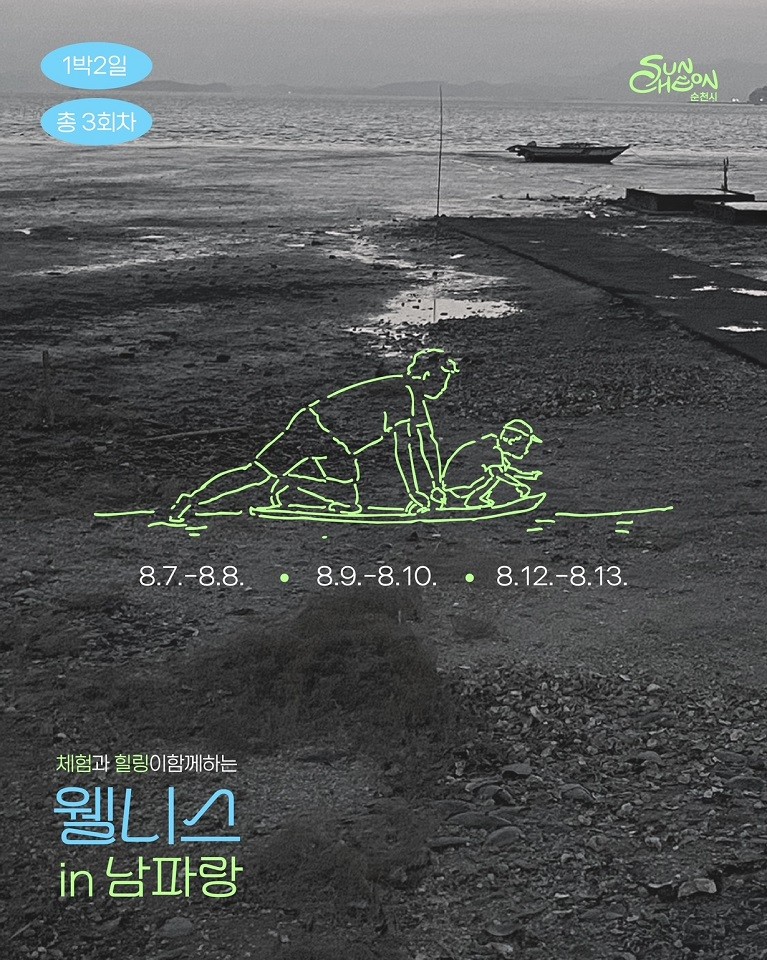 「웰니스 in 남파랑」은 순천의 대표 생태자원인 남파랑길(화포 구간)과 치유 거점 공간인 원도심 일원에서 펼쳐진다. ‘체험과 힐링이 함께하는 웰니스 in 남파랑’을 주제로 온 가족이 자연을 체험하며 회복하는 체험형 관광 프로그램이다.