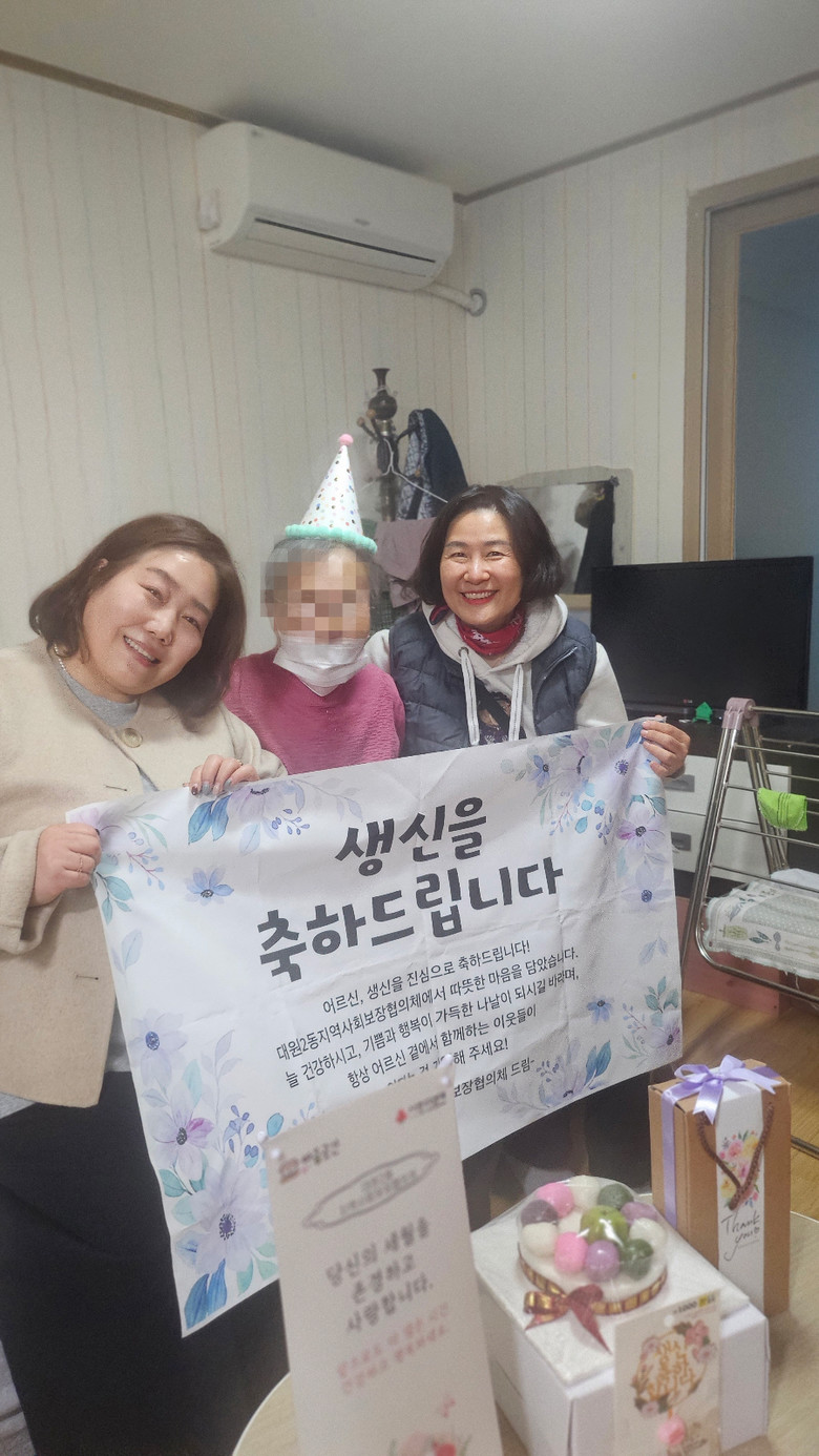 생신축하 사업은 돌봄이 필요한 어르신 가정을 방문해 케이크와 기념품을 전달하고 생활환경 점검 및 복지 상담을 함께 진행하는 맞춤형 복지 프로그램이다. 올해 총 53명의 어르신이 축하 방문을 받았으며, 약 70명의 협의체 위원이 참여해 지역 돌봄을 실천했다.
