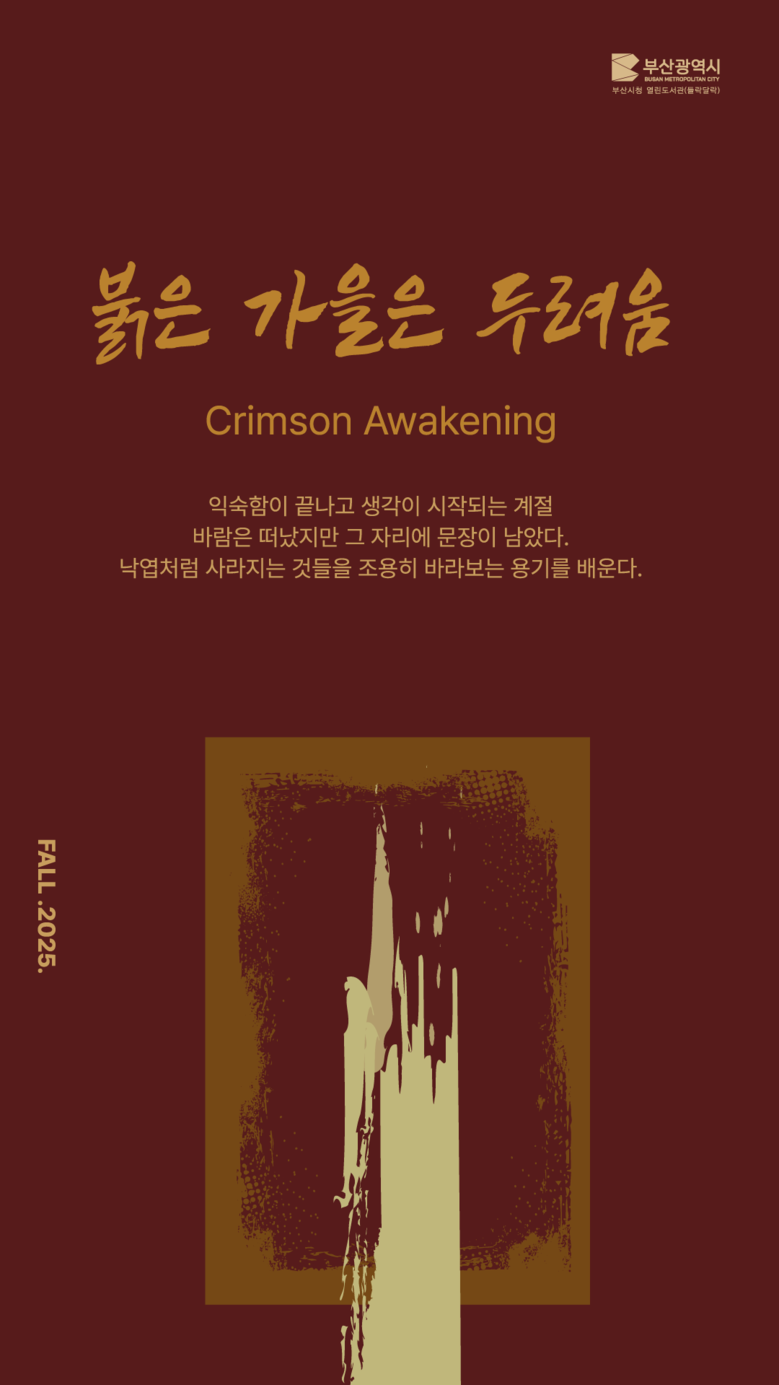 김귀옥 시 청년산학국장은 “이번 전시는 책을 단순한 읽기의 매체를 넘어, 가을 특유의 깊은 사유와 성찰의 향기를 머금은 문화의 장으로 확장하는 계기가 될 것”이라며, “시민들이 계절의 변화 속에서 자연스레 도서관을 찾고, 책을 통해 가을처럼 깊고 따뜻한 위로와 사유를 경험하기를 바란다”라고 말했다.