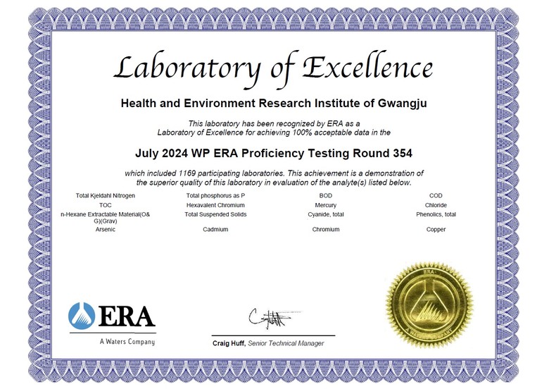 정현철 광주보건환경연구원장은 “광주보건환경연구원이 수질과 토양분석 분야에서 세계적 수준임을 다시 한번 확인했다”며 “앞으로도 국제적 신뢰를 바탕으로 분석 분야에서 우수성을 유지하고 지속적인 발전을 위해 최선을 다하겠다”고 말했다.