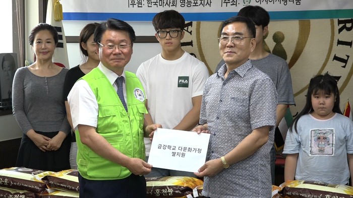 장학금 대상은 체육특기생 3명과 새터민 학생 3명 대학생 1명 다문화가정 학생 1명이다. 그리고 쌀 100포는 다문화 가정과 금강학교에 전달하였다.