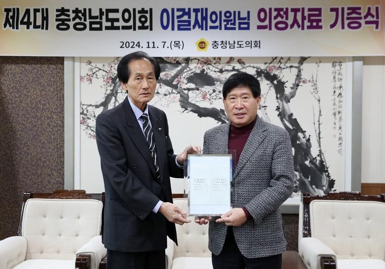 이날 이걸재 전 의원(4대 의원)은 “예전 자료들이 많이 사라지고 있어 안타깝다며 충남도의회가 의정 사료를 잘 활용해 주기를 바란다”고 말했다.