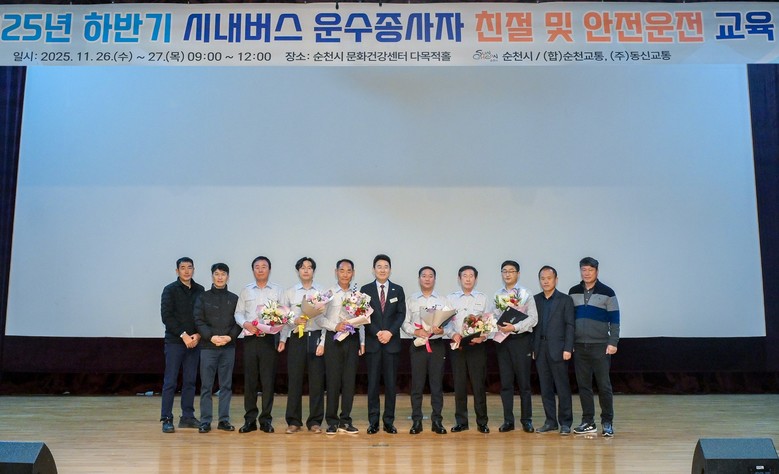 노관규 순천시장은 “시내버스 운전원들의 안전한 운행과 따뜻한 친절은 시민들의 하루를 바꾸고, 나아가 도시 전체의 품격을 높이는 중요한 힘”이라며, “이번 교육이 현장에서 겪는 어려움을 덜고, 보다 나은 서비스를 제공하는 데 실질적인 도움이 되기를 바란다”고 말했다.