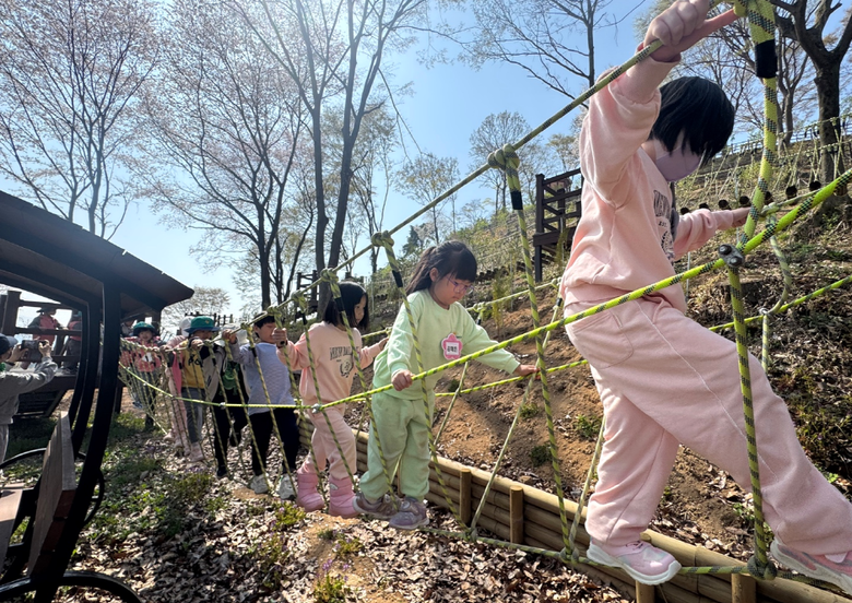 이번에 조성된 체험원에는 학습장과 데크, 야외 테이블, 벤치, 화장실 등 기본 기반시설은 물론, 그물놀이, 블록쌓기, 터널놀이, 트리하우스, 짚라인 등 자연환경을 활용한 다양한 놀이시설이 마련되어 아이들의 높은 만족도가 기대된다.