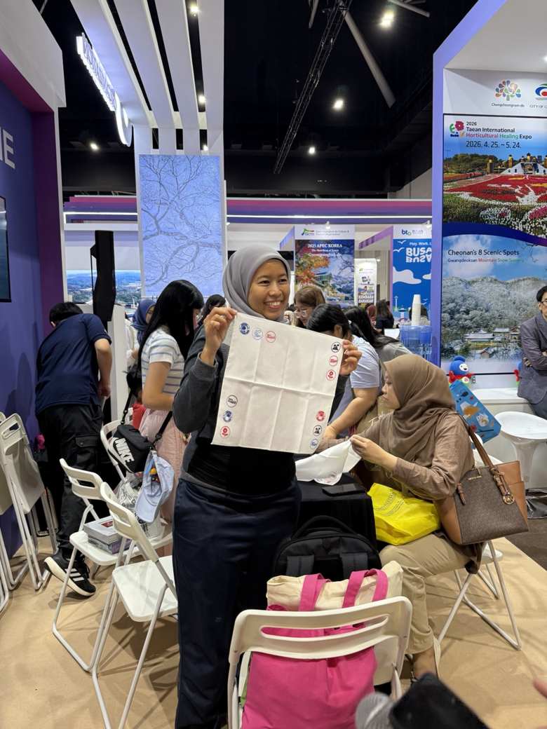 부스에서는 ▲강원 관광 손수건 만들기 ▲강원 외국인 관광택시 퀴즈쇼 ▲관광 인식 설문조사 등이 진행되었으며, 행사장을 찾은 현지인과 관광객들로부터 뜨거운 호응을 얻었다. 주말에는 부스 앞에 긴 줄이 늘어서고 참가자들이 직접 만든 손수건을 들고 사진을 찍는 모습이 이어지며 활기찬 분위기가 연출됐다.
