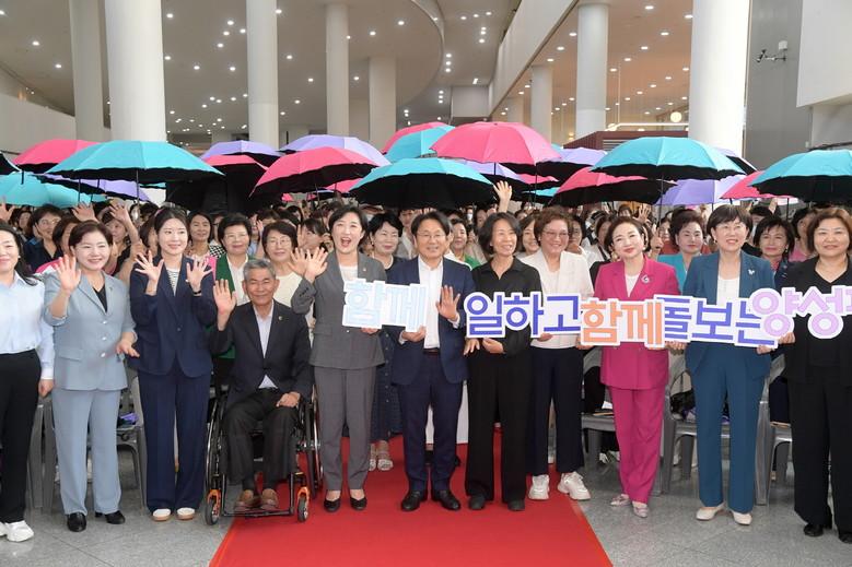 또 행사 참여자 누구나 눈높이가 같을 수 있도록 단차가 낮은 원형 무대를 설치해 기념행사의 의미를 되새겼다. 이와 함께 양성평등 실현을 위한 우산 퍼포먼스를 선보였다. 불평등·불합리 등을 사회적제도(우산)로 막고 평등한 내일을 맞이하자는 뜻을 담았다.