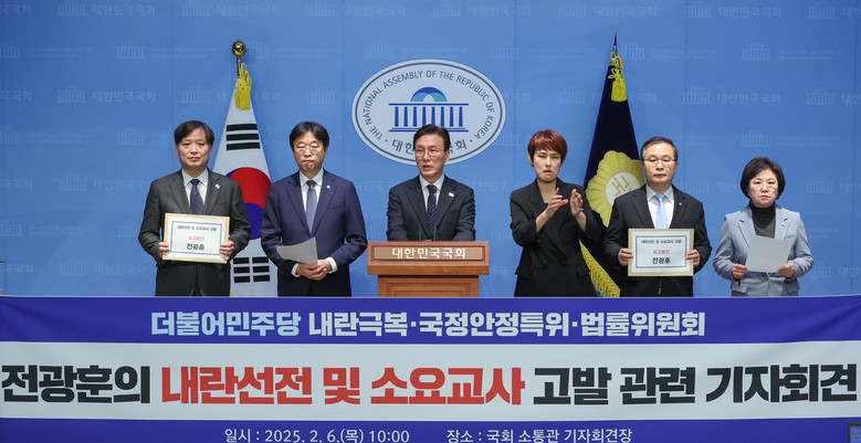 [세계타임즈 = 심귀영 기자] 더불어민주당은 6일 "전광훈 사랑제일교회 목사가 내란을 선전하고 서울서부지법 폭력 사태를 선동했다"며 전 목사를 내란선전 및 소요교사 혐의로 경찰에 고발했다.민주당 내란극복·국정안정특별위원회와 법률위원회는 이날 국회에서 기자회견을 열어 "전 목사가 위헌·위법 내란 행위를 선전하고, 대중을 상대로 소요 행위를 교사해 고발한다"며 이같이 밝혔다.