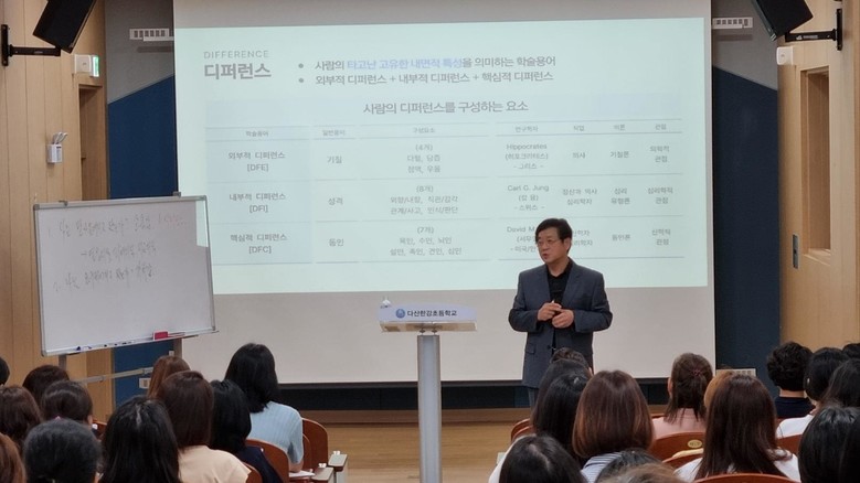 [남양주시 세계타임즈=송민수 기자] 경기도구리남양주교육지원청 다산한강초등학교(교장 이상호) 2024년 5월 29일(수), 본교 학부모를 대상으로 ‘디퍼런스와 자녀교육’이라는 주제로 연수를 성공적으로 개최했다.