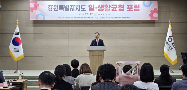 [강원도 세계타임즈=김민석 기자] 강원특별자치도는 12월 17일(수) 강원특별자치도와 강원특별자치도경제진흥원이 공동 주최하고, 강원특별자치도여성가족연구원과 강원여성새로일하기센터가 주관하여 강원특별자치도여성가족연구원 1층 강당에서 「강원특별자치도 일·생활균형 포럼」을 개최했다.