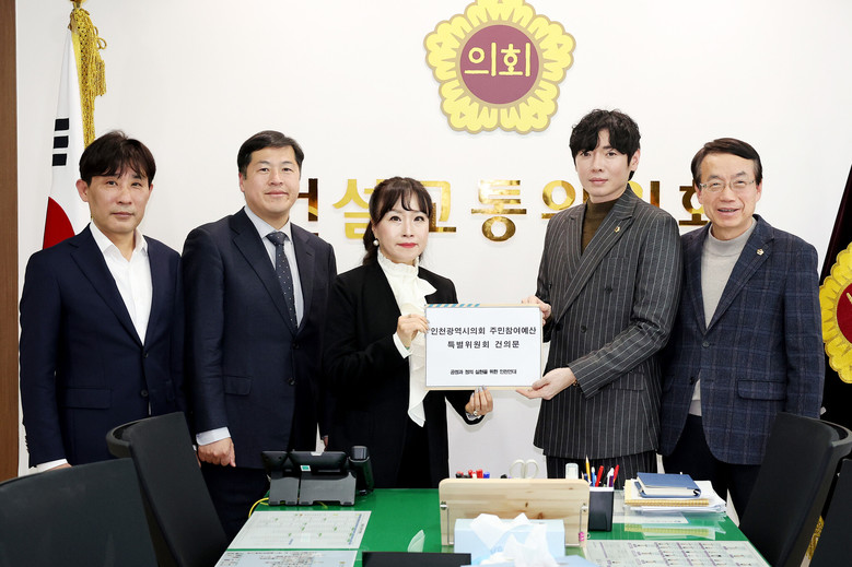 인천시의회 주민참여예산특별위원회는 최근 ‘공정과 정의 실현을 위한 인천연대 창립준비위원회’로부터 ‘인천광역시의회 주민참여예산 특별위원회에 바란다!’라는 제목의 건의문을 접수, 내용을 적극 검토할 예정이다,