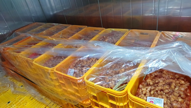 | ▲ 씨생강 소독 후 최아(싹틔우기) 처리 |