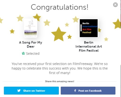 영화사측은 베를린국제예술영화제 필름프리웨이(Film Free Way)에서 온 이메일을 SNS를 통해 공유했다. 이 메일은 "경축, 선정, 귀하는 필름프리웨이(Film Free Way)에서 1차 선택을 받았다.