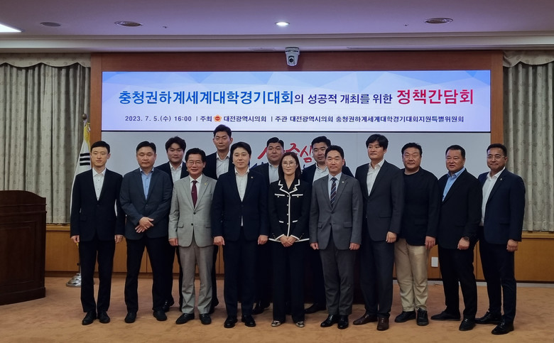 [세종 세계타임즈=이채봉 기자] 세종특별자치시의회 「2027 하계세계대학경기대회의 성공적인 개최를 위한 세종·대전 지역상생발전 연구모임」(대표의원 김현미)은 5일 대전광역시의회 충청권하계세계대학경기대회지원특별위원회에서 개최한 정책간담회에 참석했다.