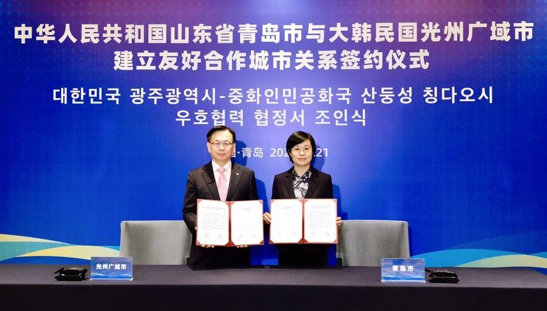 [광주 세계타임즈=손권일 기자] 광주광역시(시장 강기정)와 중국 산둥성 칭다오시가 지난 21일 칭다오시청에서 ‘우호협력도시 협정’을 체결했다.