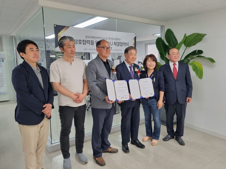 [세계타임즈 백진욱 기자] 국방안보연구소4차산업지원단& (주)만나코리아가 지난14일 MOU체결 협약식을 한국국방안보연구소중앙데이터센터에서 가졌다. 순서는 환영사, 협약서 낭독, 협약서 조인, 기념 촬영 순으로 진행되었다.