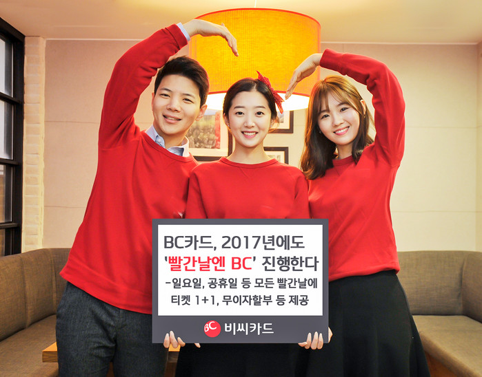 이 외에도 2017년 內 모든 빨간날에 BC카드로 5만원 이상 결제한 고객들에게는 2~3개월 무이자 할부 혜택도 제공된다.