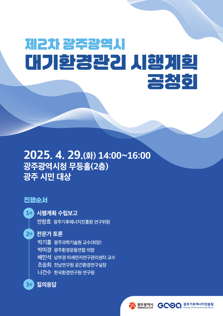 나병춘 기후대기정책과장은 “이번 공청회는 광주지역 대기환경 개선을 위한 실효성 있는 정책을 도출하고, 시민들의 다양한 의견을 반영해 보다 효과적인 대기질 관리방안을 마련하는 중요한 자리”라며 “많은 시민의 관심과 참여 바란다”고 말했다.