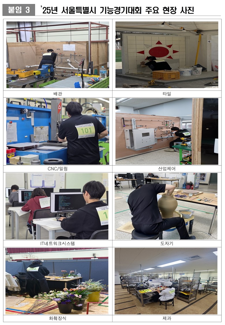 한편, 서울시는 미래의 숙련기술인을 발굴하기 위한 기능경기대회 개최 및 지원 외에도 기술교육원 운영 등 다양한 산업 기술인 양성 정책을 병행하고 있다.