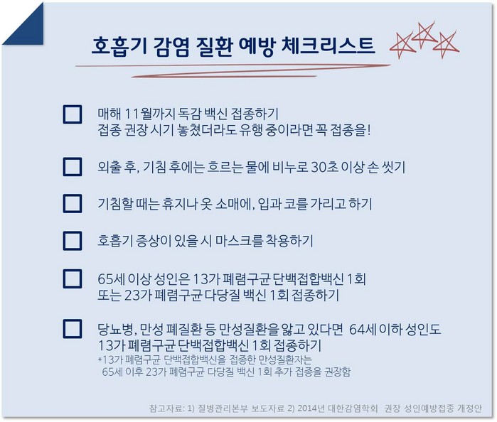 -독감 합병증 위험 높은 고령자∙만성질환자∙면역저하자는 폐렴구균 예방접종도 챙겨야