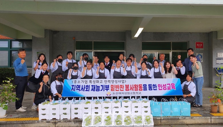 논산여자상업고등학교는 지난 25일(월)부터 26일(화)까지 ‘지역사회 재능기부 봉사활동 주간’으로 정하고 공익단체 늘푸른나무와 연계하여 수혜 대상자를 선정, 45명의 이웃들에게 정성껏 만든 밑반찬과 과일을 전달하는 등 모두가 함께하는 나눔과 배려의 기부 활동을 진행했다.