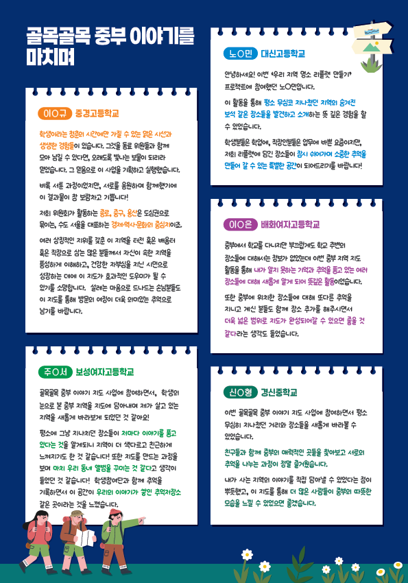지도 제작 과정에 참여한 한 학생은“그동안 무심히 지나쳤던 거리와 장소를 새롭게 바라보게 되었고, 내가 사는 지역의 이야기를 직접 담아낼 수 있어 뿌듯했다”고 소감을 밝혔다.